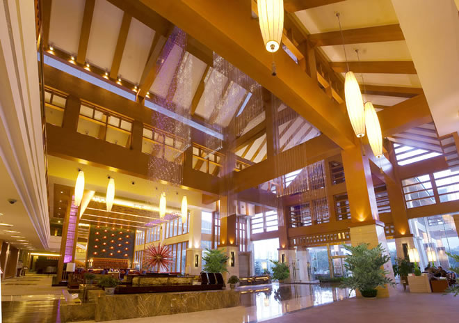 參照東南亞度假酒店特點,融入土家及自身文化,主題鮮明,富有個性,充分利用自然景觀,營造室外流水瀑布,室內(nèi)琴聲繚繞的氛圍,突出人與自然的和諧。