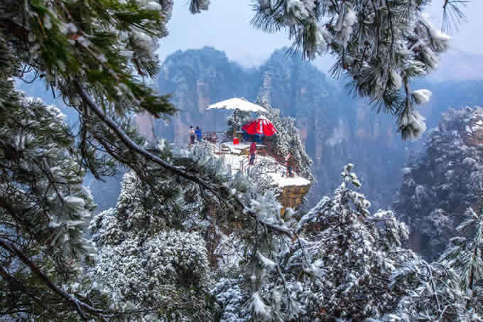 楊家界雪景 作為世界自然遺產(chǎn)武陵源四大核心景區(qū)之一的楊家界景區(qū),地勢險要,風景絕美,跟張家界、天子山、索溪峪比較,其中的地質(zhì)地貌一部分相同外,又有其獨特的資源優(yōu)勢,擁有全球罕見的峰墻群奇光。乘坐在舒適的楊家界索道里,可以盡情體驗“會當凌絕頂,一覽眾山小”的居高臨下與動感,360度暢游夢想般的楊家界仙界,俯瞰“近在咫尺”的千山萬壑,山舞銀蛇,千嬌百媚的絕美“峰墻”盡收眼底,無限風光在險峰,數(shù)十道氣勢如虹的石墻,一排排層巒疊嶂,相對平行而立,高矮參差不齊,宛如“天然長城”,真是美輪美奐,絕景天賜,不得不讓人驚嘆大自然的璧山開地之功。