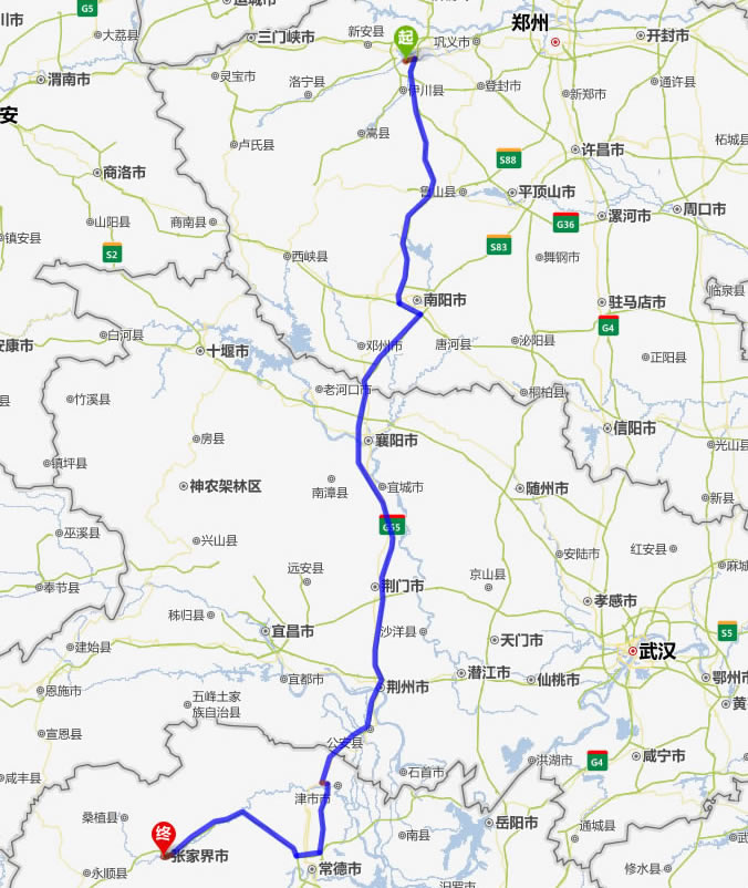 洛陽去張家界自駕車自助游線路圖全程高速):