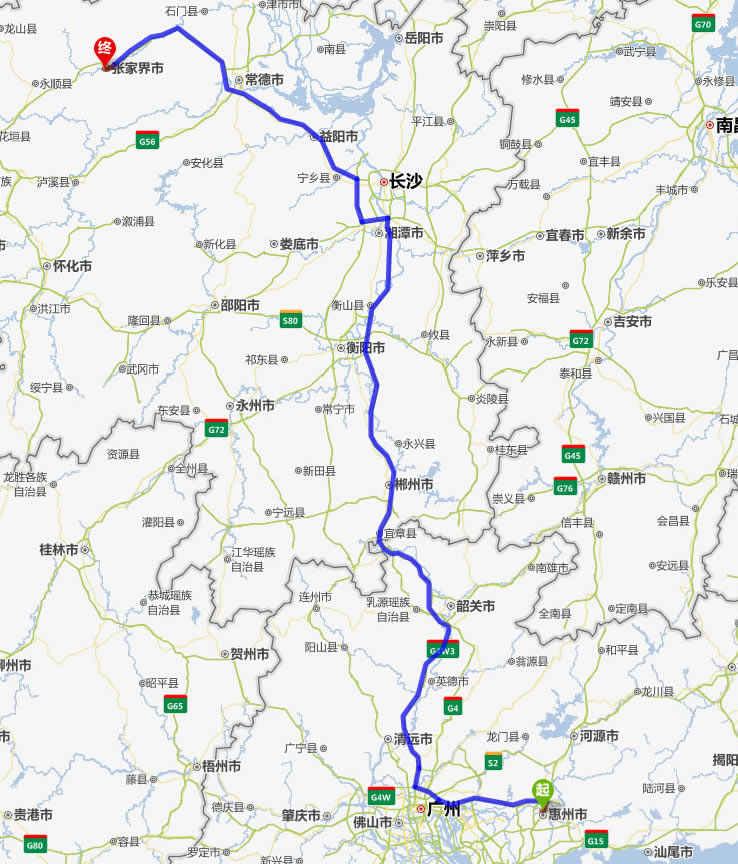 肇慶去張家界自駕車自助游線路圖全程高速):