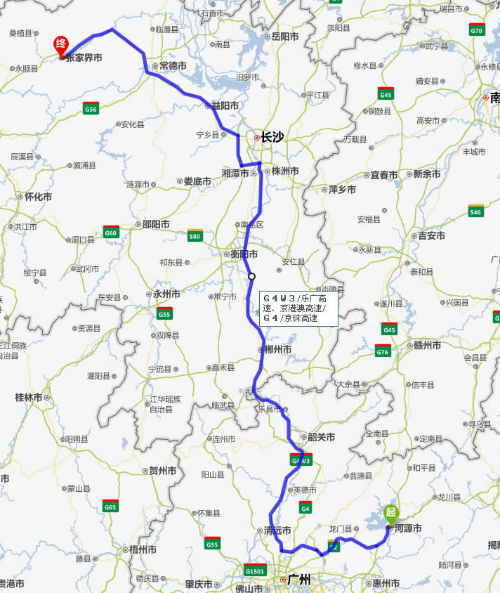 現(xiàn)在位置:張家界旅行社->交通指南->自駕車(chē)路線 -> 河源到張家界旅游自駕車(chē)線路_河源去張家界自駕車(chē)要多長(zhǎng)時(shí)間_有多少公里