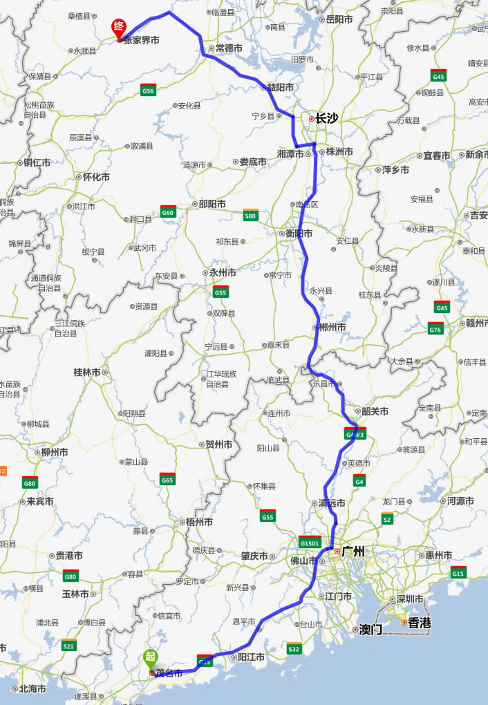 現(xiàn)在位置:張家界旅行社->交通指南->自駕車(chē)路線 -> 茂名到張家界旅游自駕車(chē)線路,茂名去張家界自己開(kāi)車(chē)要多長(zhǎng)時(shí)間,有多少公里