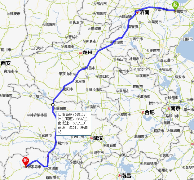 濰坊去張家界自駕車(chē)自助游線路圖全程高速):