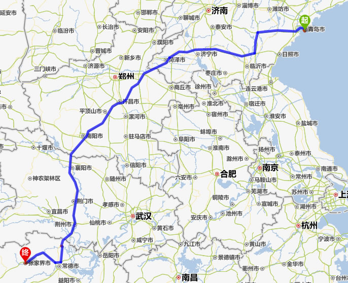 青島去張家界自駕車自助游線路圖全程高速):