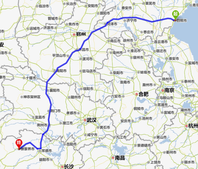 日照到張家界自駕車(chē)旅游線路(距離最短)
