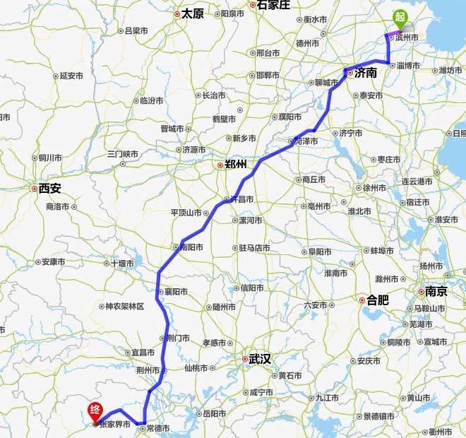 利津縣到張家界自駕車(chē)旅游線(xiàn)路(距離最短)