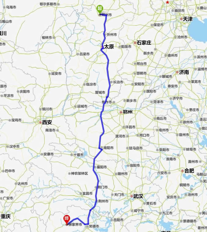 現(xiàn)在位置:張家界旅行社->交通指南->自駕車路線 -> 朔州到張家界旅游自駕車線路-朔州去張家界自己開車要多長時間,有多少公里
