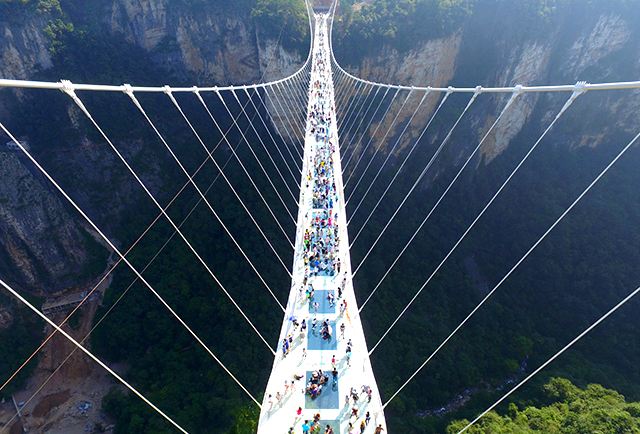 張家界大峽谷玻璃橋橋面由99塊全透明玻璃鋪設(shè),橋面總長(zhǎng)430米、寬6米,距谷底相對(duì)高度約300米,游客走在橋上就可以清楚地看到腳下的懸崖峭壁,好似行在空中,非常刺激,被美國有線電視新聞網(wǎng)列入世界上11座最壯觀的橋之一。目前,張家界大峽谷玻璃橋已經(jīng)成為世界旅游的一張響亮名片。